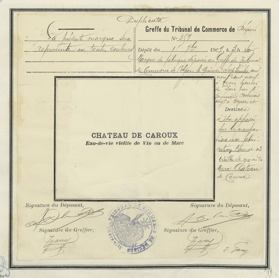 Eau-de-vie vieillie de Vin ou de Marc - Date de dépôt
