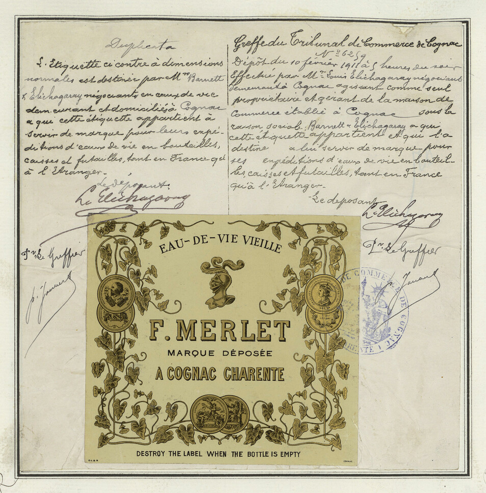 - Eau-de-vie vieille F. Merlet Marque déposée à Cognac Charente
