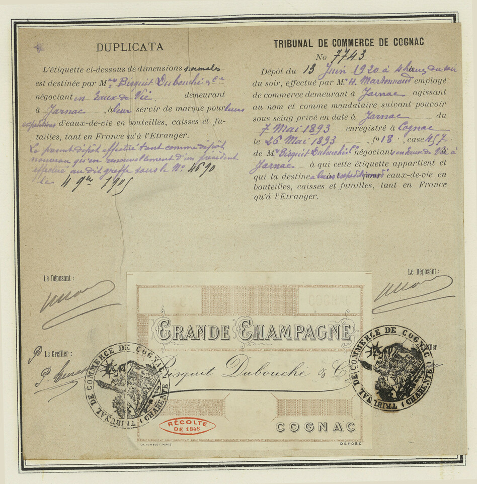 - L'étiquette ci-dessous de dimensions normales est destinée par M. Bisquit Dubouché & Cie.